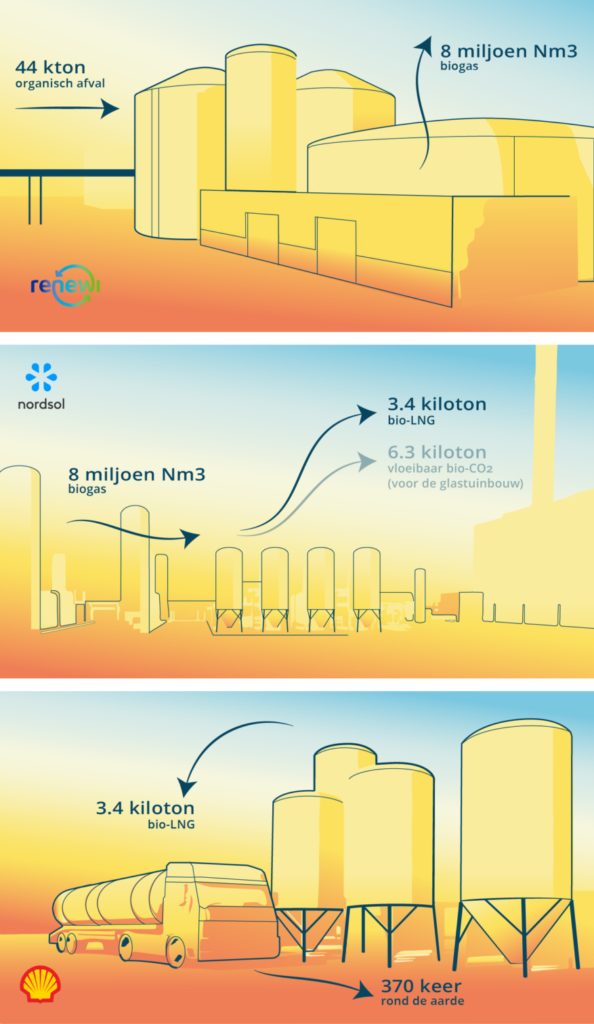 Vandaag, 19 november, is de bouw gestart van de eerste bio-LNG-installatie van Nederland. Initiatiefnemers Renewi, Nordsol en Shell verwachten halverwege volgend jaar het eerste bio-LNG te leveren. De installatie komt
