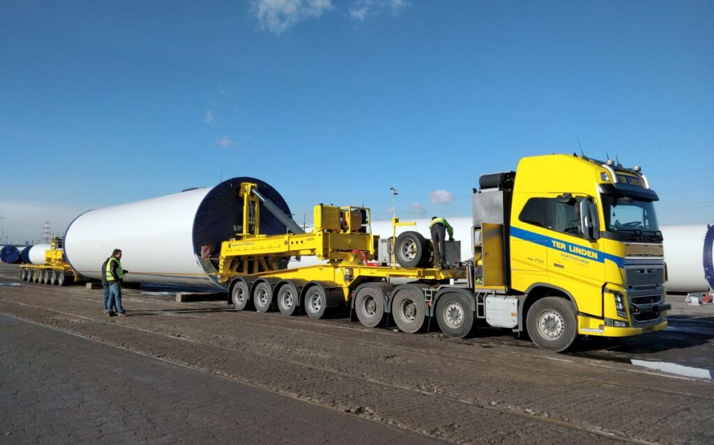 Ter Linden Transport uit Doetinchem (NL) heeft als eerste de nieuwste MWT-XL Mega Windmill Trailer van Nooteboom in ontvangst genomen, bestaande uit een 4-assige Jeepdolly met liftadapter en een 7-assige
