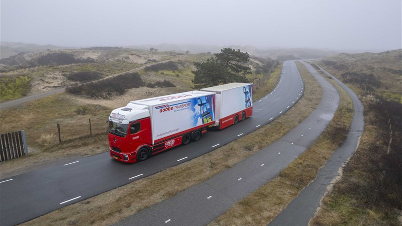 Er waren al elektrische vrachtwagens aanwezig in de vloot van Dobbe Transport, maar die rijden geen lange afstanden. Nu heeft het bedrijf een Mercedes-Benz eActros 600 aangeschaft voor groupage in