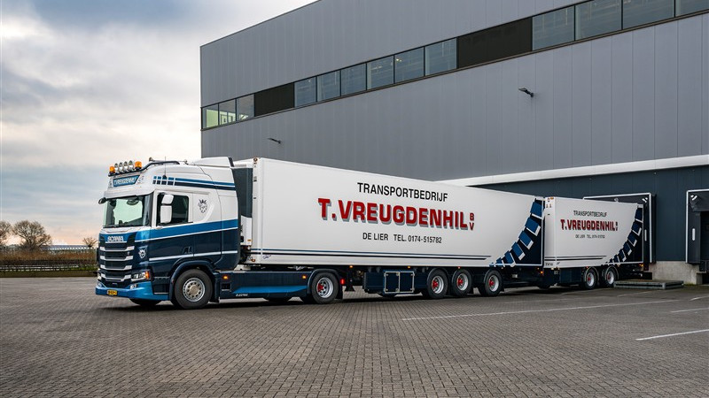 Sommige bedrijven zijn huiverig om aan elektrische vrachtwagens te beginnen, andere springen direct in het diepe. T. Vreugdenhil ziet zijn Scania 40R wel naar Oostenrijk rijden. Binnenkort ontvangt hij de tweede.