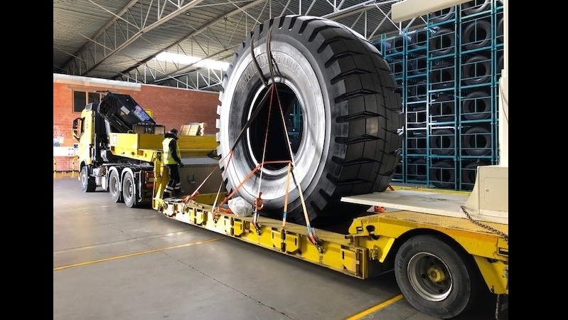 Het gaat om een Bridgestone Giant Tire. De band is 3,82 meter hoog en weegt bijna 6000 kilogram. De banden worden gebruikt op de reusachtige kiepwagens in de dagbouwmijnen in Zweden.