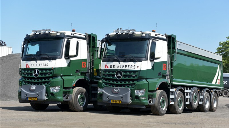 De 10×4 is gebaseerd op een 8×4 Arocs. De 10×8 begon zijn leven als af-fabriek 8×8. De twee vrachtwagens zijn door Veldhuizen Trucks voorzien van een gestuurde, liftbare 10-tons as. Beide kippers hebben hierdoor een hoger laadvermogen. Het totaalgewicht bedraagt respectievelijk 49 en 50 ton. DB Kiepers koos voor de Mercedes-Benz Arocs vanwege zijn betrouwbaarheid. Bovendien zijn ze onderhoudsvriendelijk.