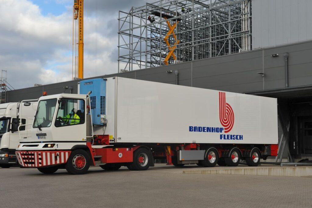 Trailerbouwer Van Eck leverde in 2014 een drie-assige trailer voor shuttle-ritjes vanaf de fabriek naar het hoogbouwmagazijn. Van de fabriek van de Duitse vleesverwerker Badenhop Fleischwerke naar diens logistieke centrum, een ritje van 2,5 kilometer. Inmiddels heeft deze trailer relatief weinig kilometers gemaakt, maar enorme tonnages vlees vervoerd.