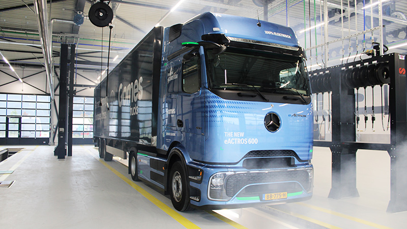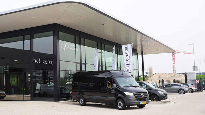 Het lijken twee gescheiden werelden: de luxe personenauto’s en de vrachtwagens van Mercedes-Benz. Bij Gomes Aalsmeer komen deze werelden samen. Aan de ene zijde van het nieuwe pand bevinden zich de showroom en de werkplaats voor personenauto’s en bestelauto’s, terwijl aan de andere zijde aan vrachtwagens wordt gesleuteld. “Dit zorgt voor een mooie synergie”, stelt vestigingsmanager Norbert Schmitz.