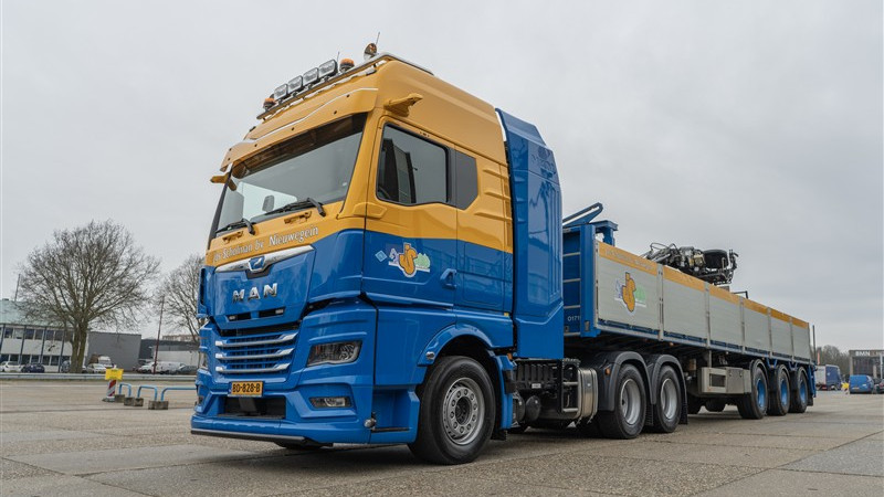 Voor het eigen vervoer van materialen heeft Jos Scholman Bedrijven zes exemplaren van de MAN hTGX besteld. De eerste is nu geleverd. Dit is de eerste MAN hTGX in bedrijfskleuren in Nederland. De vrachtwagen is voorzien van een waterstof-verbrandingsmotor. Vier tanks achter de cabine bevatten maximaal 56 kilo waterstof bij een druk van 700 bar. De MAN H45 waterstofmotor levert 520 pk en een indrukwekkende 2.500 Nm aan trekkracht.