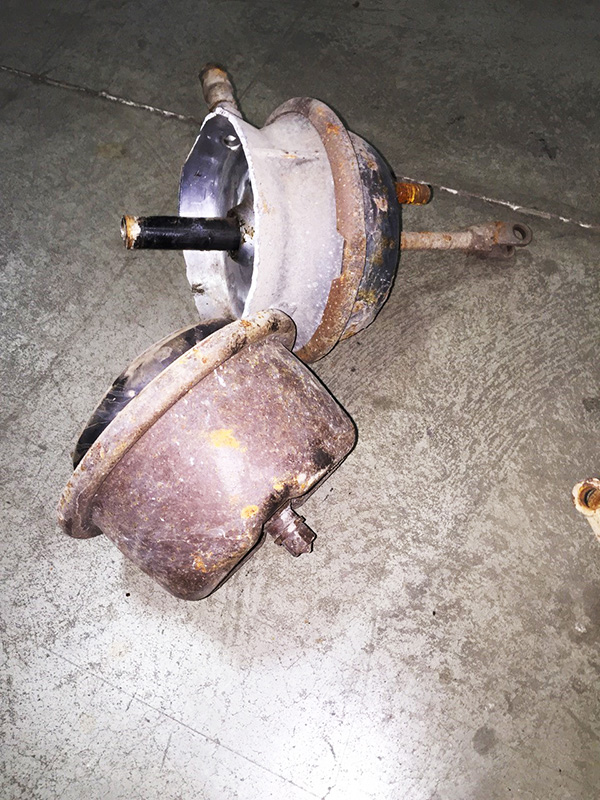 De visuele inspectie van de trommelremcilinders gaat verder naar de bevestigingsplaat op de as: de monteur moet deze reinigen, vluchtroest verwijderen en goed controleren of deze vlak en onbeschadigd is, waarbij hij de lasnaden op scheuren moet controleren. De drukstang op de remcilinder vormt een hoek van 90 graden ten opzichte van de stangensteller en raakt de remcilinder rechtstreeks om voortijdige slijtage van het membraan en beschadigingen aan de behuizing te voorkomen. De vorkkop moet worden gecontroleerd op slijtage en scheuren.