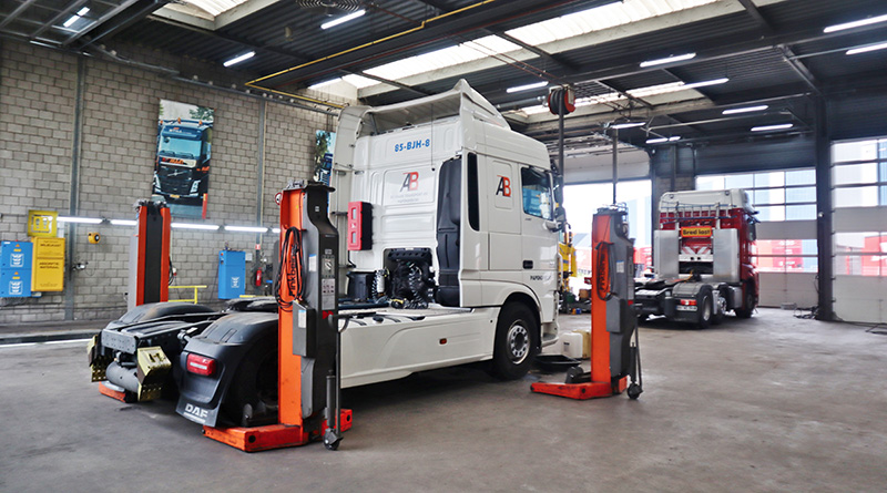 Hier beschikt MAAT over een ruime werkplaats met wasstraat. Het gebouw is zo ontworpen dat vrachtwagens door het pand kunnen rijden. In de werkplaats wordt niet alleen het eigen wagenpark onderhouden. Meer dan de helft van het werk is voor derden. “Het begon met een simpele smeerput, maar ondertussen is het uitgegroeid tot een volwaardige werkplaats. We willen het aanbod graag uitbreiden”, vertelt Busé. “Alleen het eigen wagenpark onderhouden is niet rendabel. Werk van derden heb je nodig. Zo’n werkplaats vereist veel kennis, apparatuur en mensen. Bedrijven onderschatten dit wel eens.”