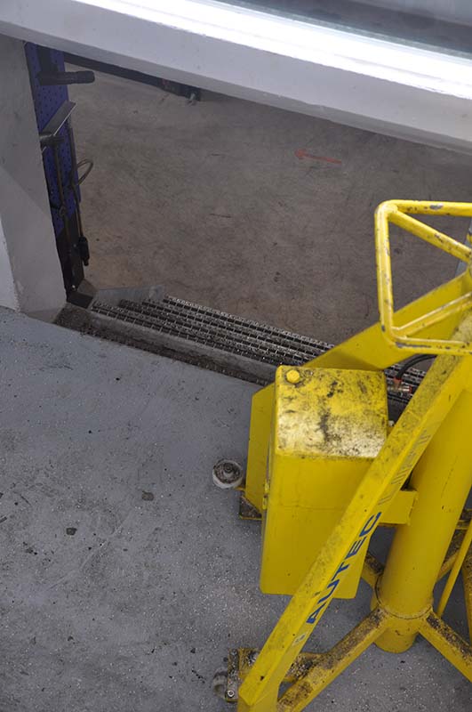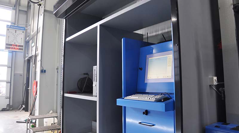 De remmentestbank is afgesloten achter een roldeur wanneer deze niet in gebruik is. De deeltjesteller staat in bestelling.