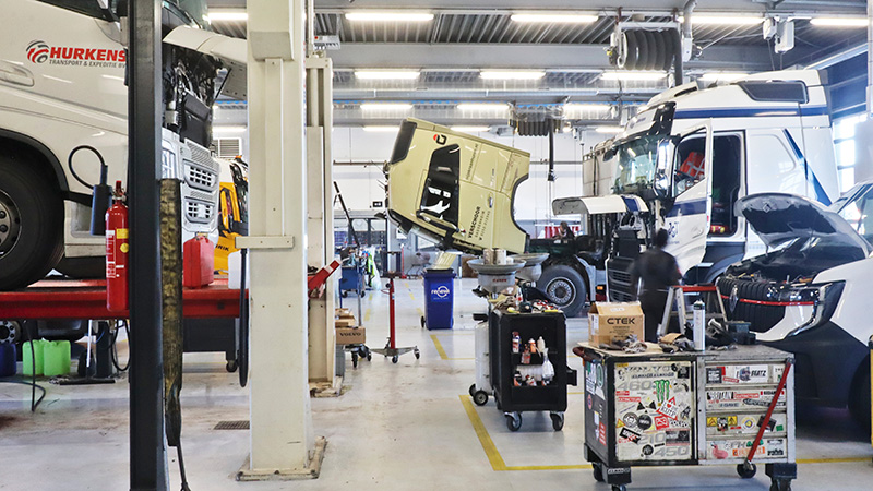 Tijdens de verbouwing zijn enkele wijzigingen doorgevoerd in de werkplaats. Een gevaarlijke verhoogde rand om de put is weggewerkt. De vloer is geheel voorzien van een nieuwe coating. Ook de belijning is vernieuwd. Markeringen geven aan waar vrachtwagens kunnen parkeren waarbij ze zelfs met een gekantelde cabine niet de doorloop blokkeren. De looppaden zijn aangepast, zodat er minder discussie is over waar men mag komen zonder werkschoenen. De lay-out volgt het lean-principe. Voor gereedschap zijn speciale vakken gemaakt, zodat het altijd op de juiste plek staat.