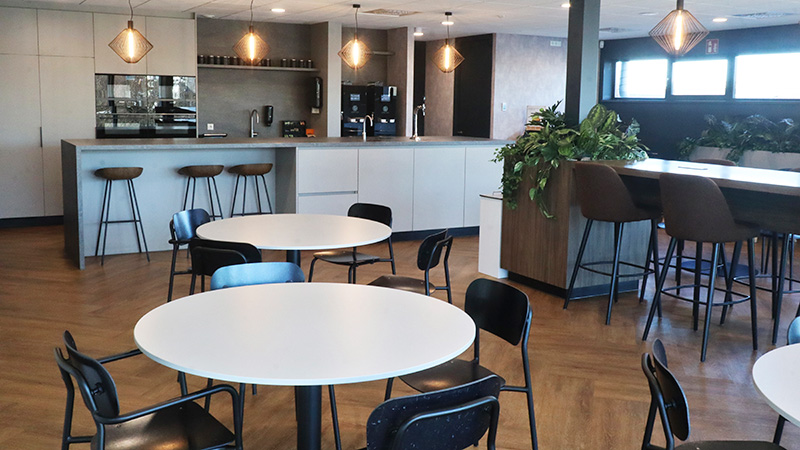 Heel bijzonder is het gezamenlijke werkcafé. Dit is niet alleen voor het kantoorpersoneel, maar ook de 33 medewerkers van de werkplaats zijn hier welkom. “Het werkcafé werkt heel goed voor de samenwerking. We zien dat iedereen door elkaar gaat zitten”, aldus Van Beest. “In het begin hadden we zorgen over hoe schoon alles zou blijven, maar dat bleek onterecht. Iedereen is er heel zuinig op. Medewerkers zien het duidelijk als een investering in henzelf.” Volgens Pieters bevordert het werkcafé ook de integratie van nieuwe mensen, omdat nieuwe krachten opvallen en aangesproken worden.