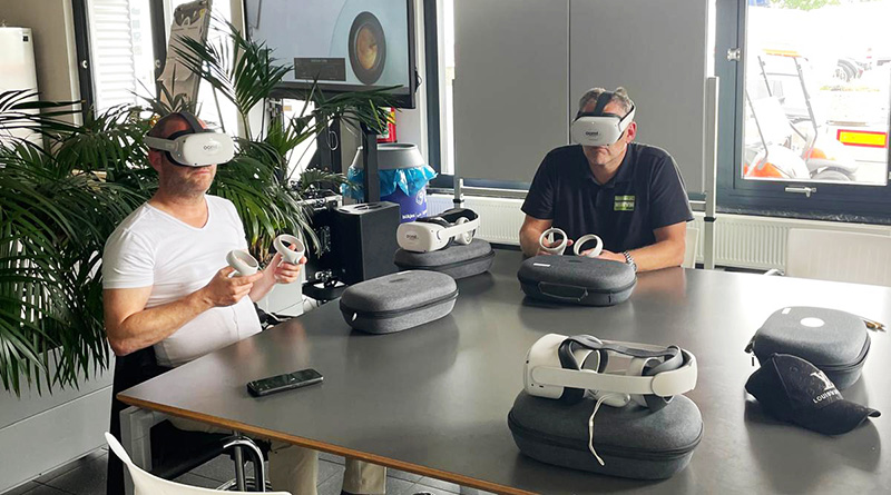 Elektrisch rijden, zeker in de transportwereld, staat nog in de kinderschoenen. Dat het de toekomst is, daar zijn Jan van der Ent, aftersalesmanager, en Jurgen Bouwens, werkplaatsplanner bij bedrijfswagenhandelaar Kleyn in Vuren, vast van overtuigd. Daarom tekenden zij in op de VR Experience Truck van opleidings- en ontwikkelingsfonds OOMT, die een virtueel beeld geeft van de truckwerkplaats van de toekomst.