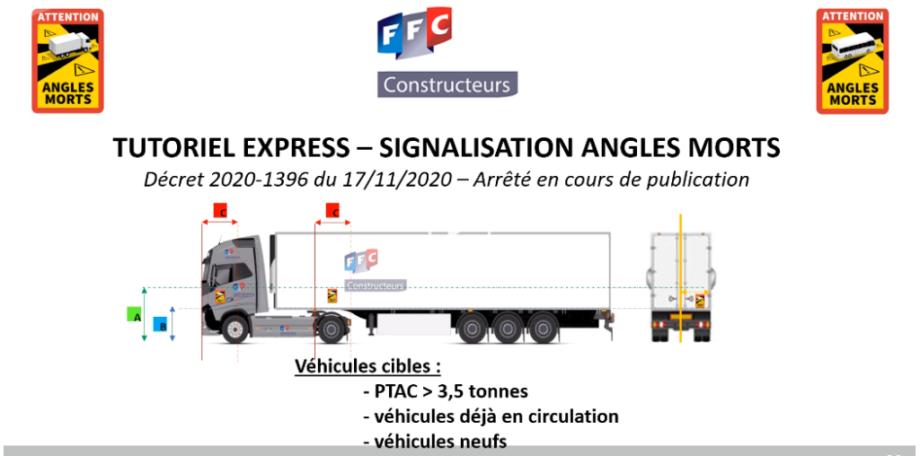 Op 1 januari 2021 wordt de Franse wegcode gewijzigd en wordt het verplicht in Frankrijk om de dode hoeken op voertuigen te markeren met stickers. De verplichting zou gelden voor